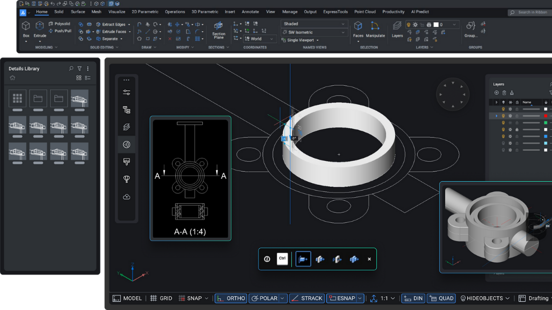 Además, ofrece la capacidad de realizar modelado en 3D mediante modelado directo, Modelado digital de terreno (topografía), alineamientos horizontales y verticales de calles, procesado de nubes de puntos de escaneo, renderizado y animación, bloques paramétricos y otras herramientas de productividad asociadas al motor de inteligencia artificial que benefician al usuario en su desempeño.