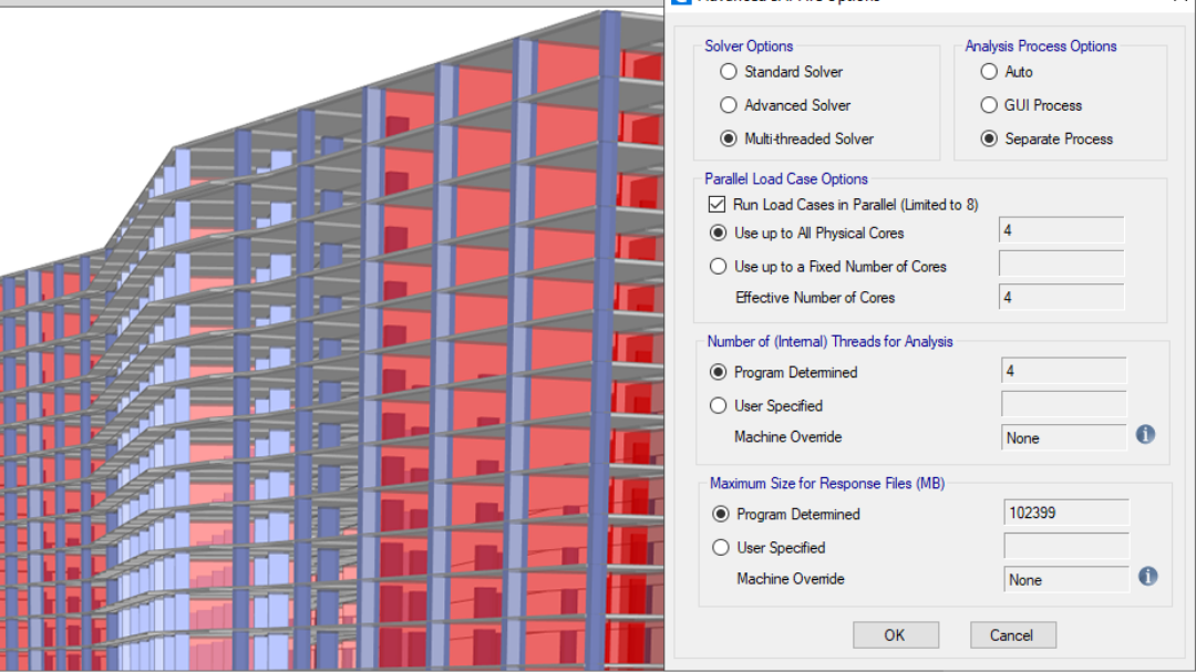 Además, incluye la posibilidad de integrarse con SAP2000 para realizar análisis adicionales sobre las estructuras cuenta con un resolvedor de ecuaciones sin igual capaz de realizar análisis de Ritz y Eigen values en paralelo.