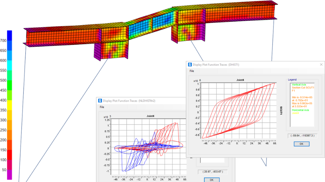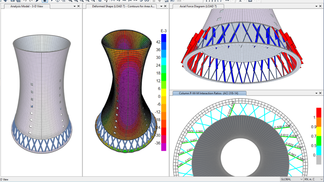 CSiPlant incluye secuencias no lineales de carga y análisis, análisis P-Delta y pandeo de estructuras entre otros.